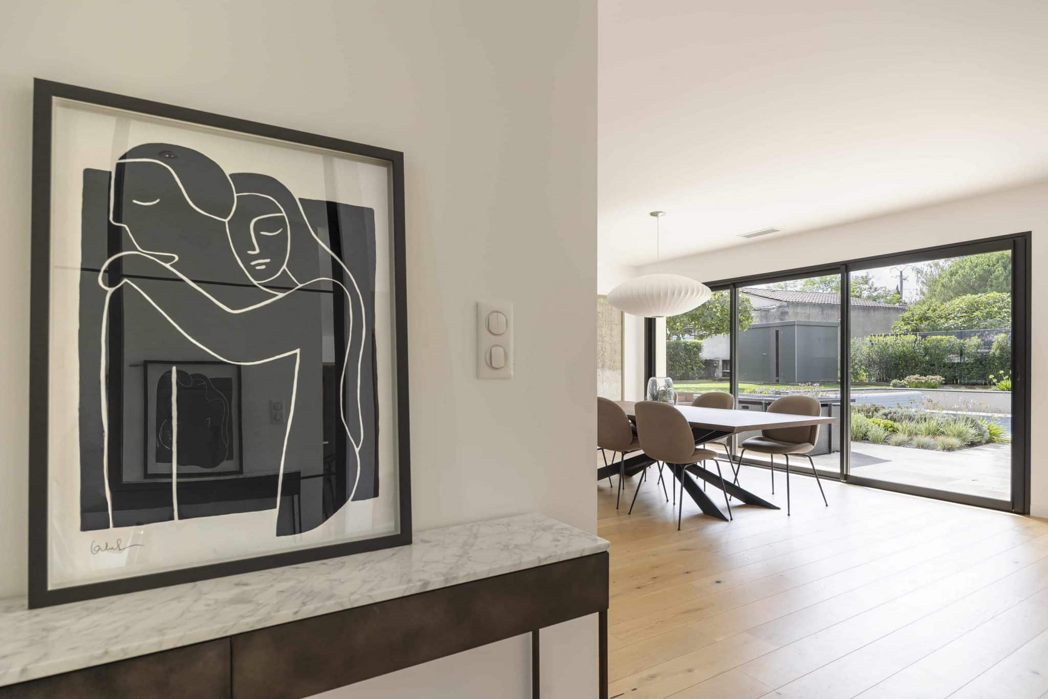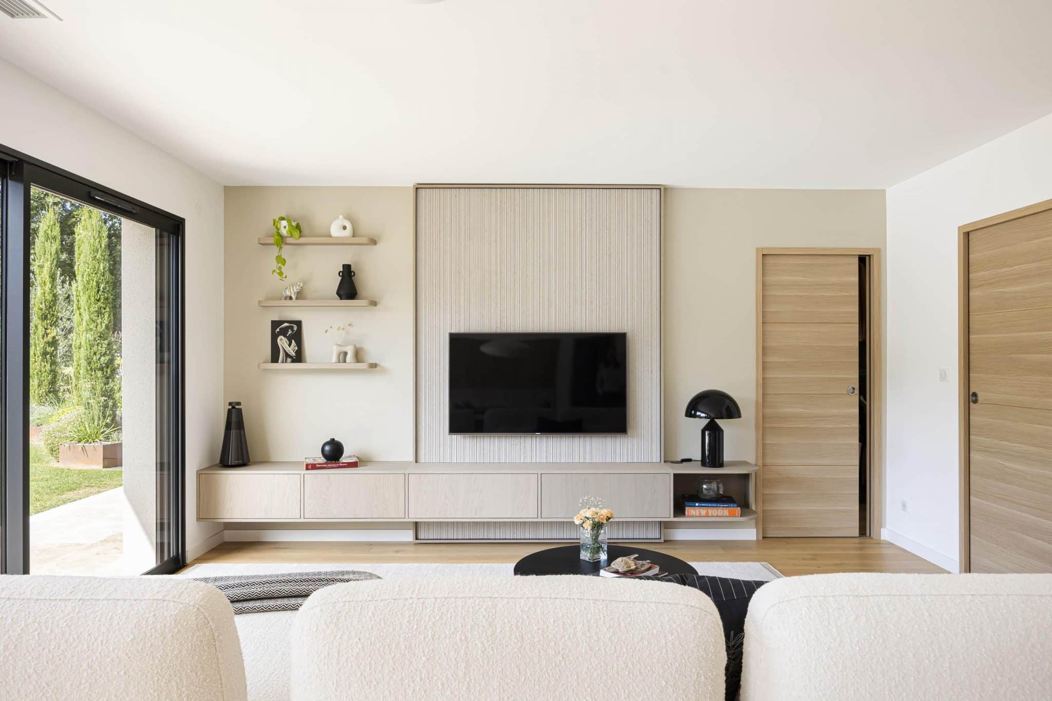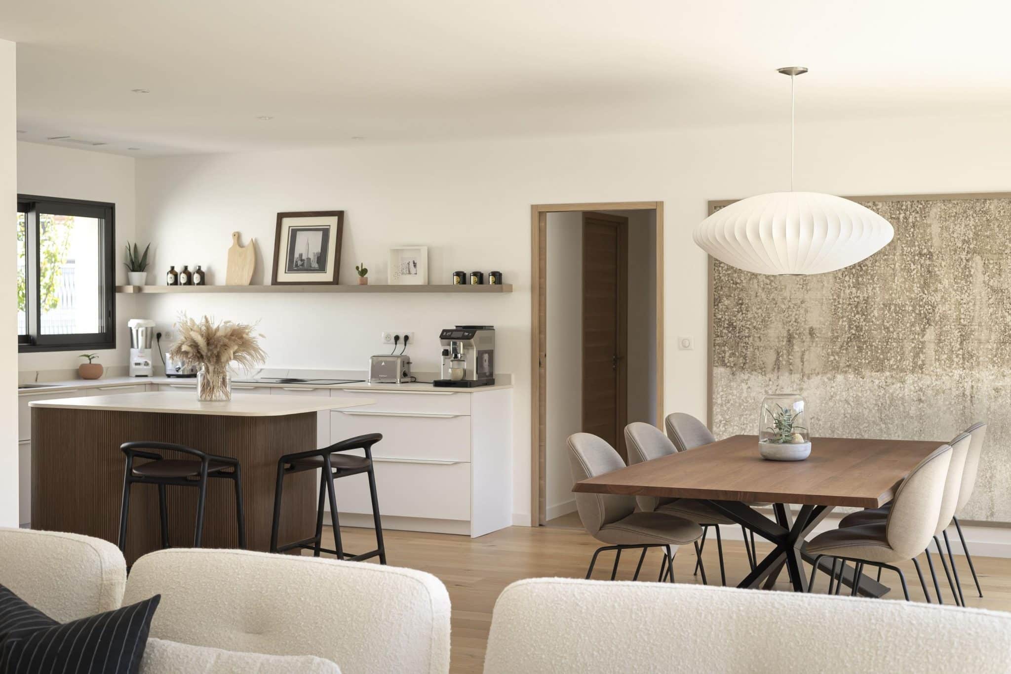 Derrière son élégante façade, cette maison contemporaine révélait un intérieur froid et sans caractère. Espaces blancs, volumes vides, atmosphère neutre : rien ne traduisait la personnalité de ses occupants. Le projet a consisté à redonner sens et chaleur à l’ensemble, par un travail précis sur les matières, les couleurs et les formes.